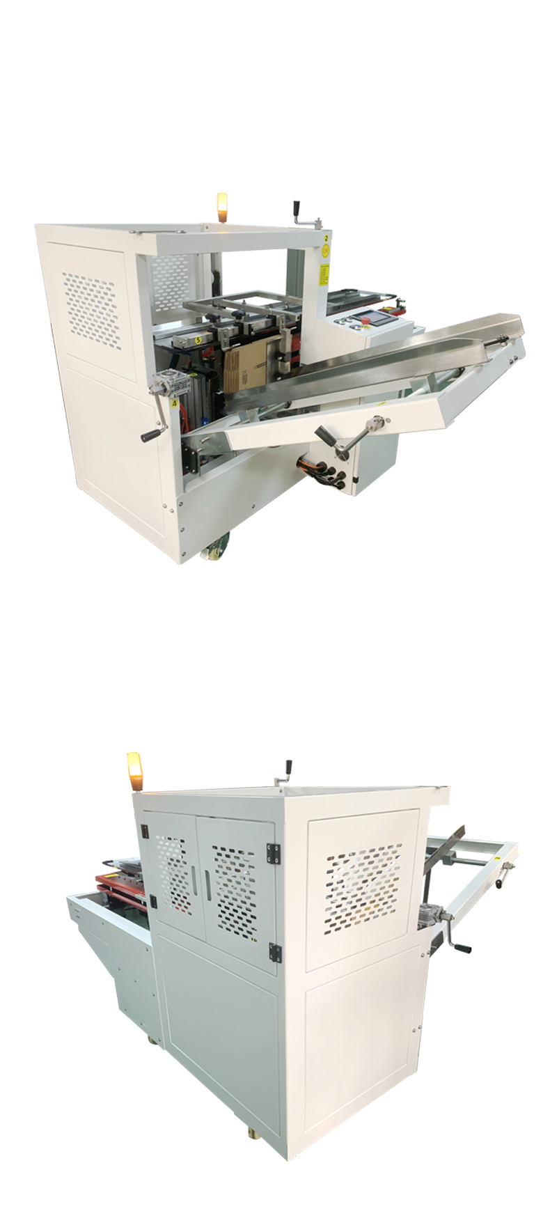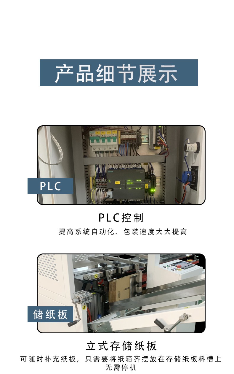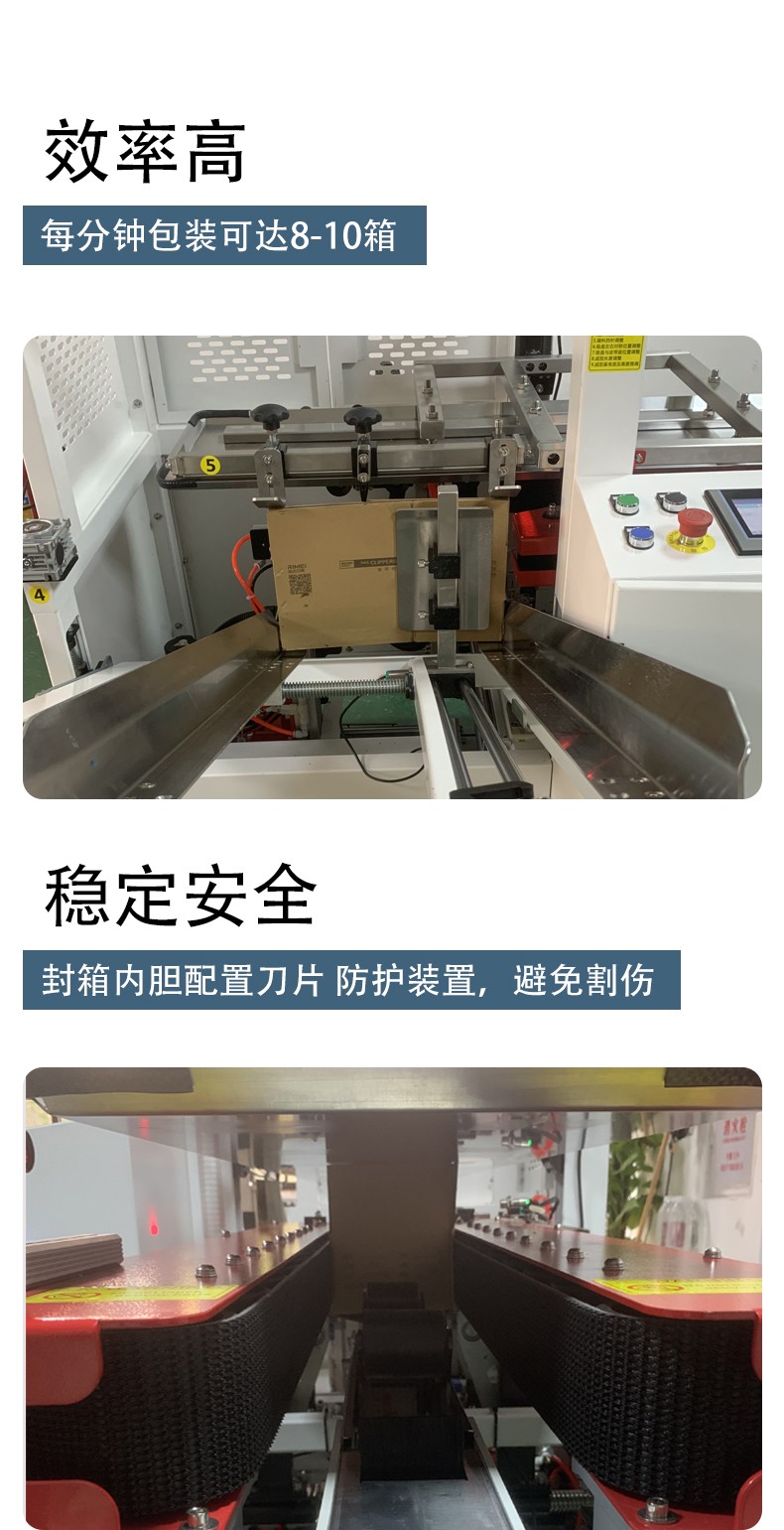 5. 封底操作:紙箱開箱完成后,會被輸送至封底工位。如果是膠帶封底,膠帶分配器會按照設定的長度切斷膠帶,并將其粘貼到紙箱底部,然后通過壓輥將膠帶壓實,確保粘貼牢固;如果是膠水封底,膠水儲存罐中的膠水會通過涂布裝置均勻地涂抹在紙箱底部的折合邊上,接著折合板將底部折合,實現封底。
