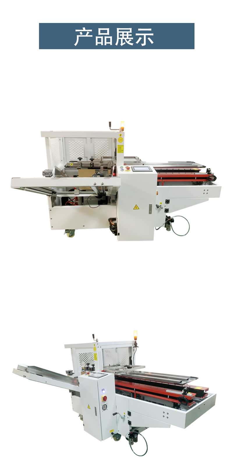 3. 紙箱上料:將堆疊好的紙箱坯料放置在紙箱供給系統的儲存架上。儲存架一般具有一定的容量,可以一次性放置多個紙箱坯料。設備會自動逐個將紙箱坯料輸送至開箱工位。
