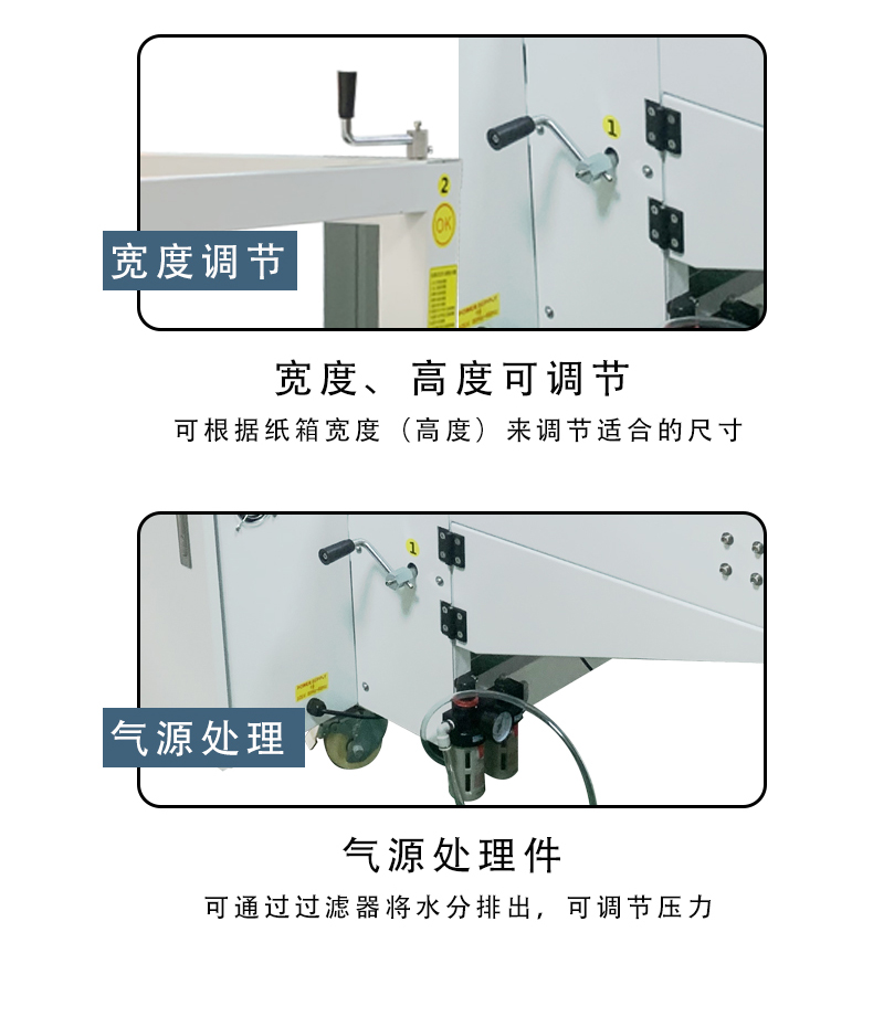 2. 參數設置:根據待包裝紙箱的尺寸,在控制系統的觸摸屏或控制面板上設置相應參數,如紙箱的長度、寬度、高度等,以及膠帶長度、膠水涂布量、開箱和封底的速度等參數。有些設備還可能需要設置吸盤的吸力、折合板的動作時間等參數。這些設置通常較為直觀,按照設備的提示進行操作即可。