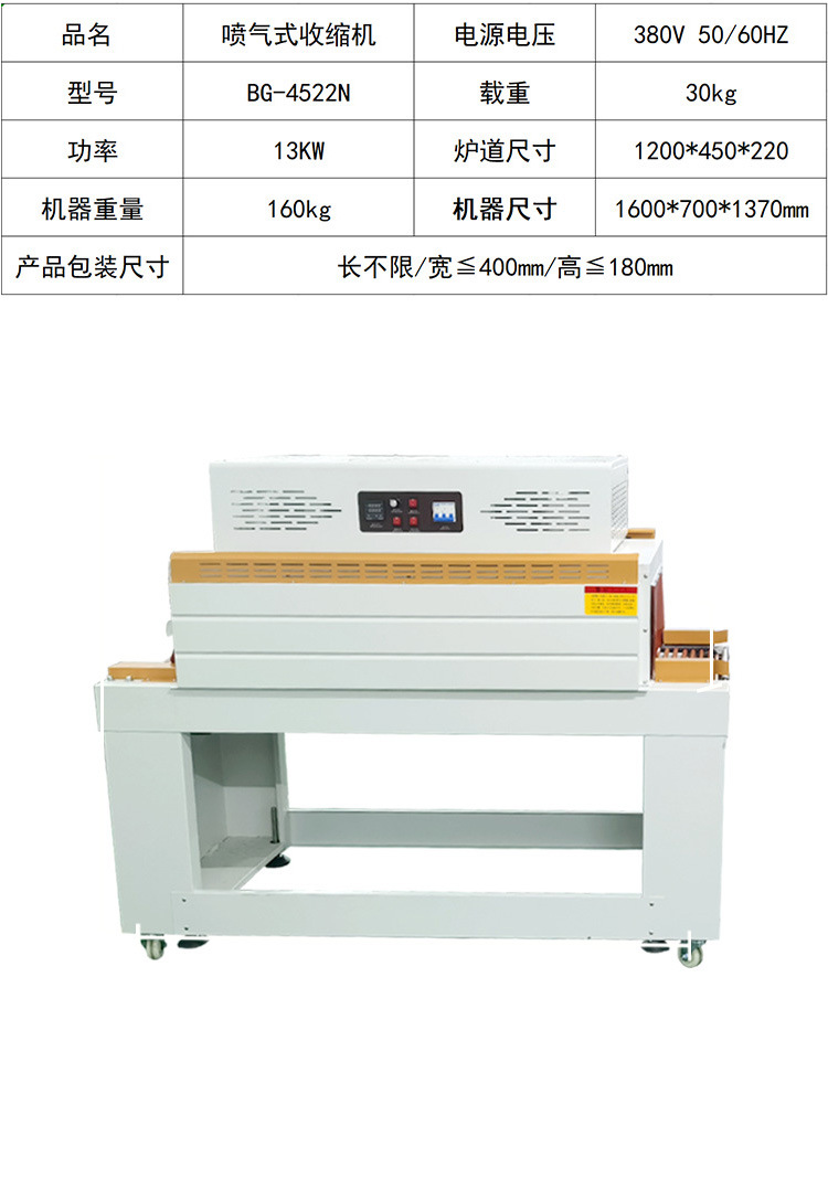 - 產(chǎn)品尺寸:根據(jù)所包裝產(chǎn)品的最大和最小尺寸,選擇合適規(guī)格的封切熱縮機(jī),確保設(shè)備能夠容納和處理產(chǎn)品。