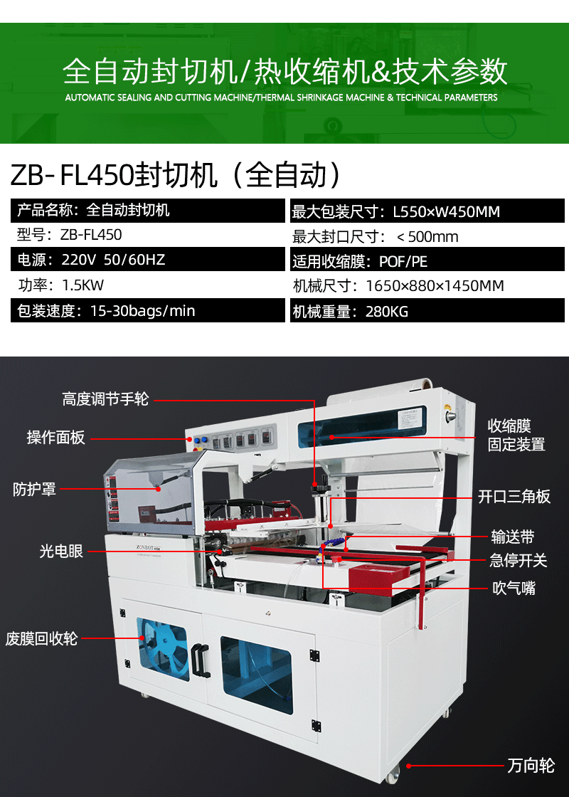 全自動封切熱收縮機適用于手機、平板電腦、電子配件等電子產品的包裝,起到防塵、防潮、防靜電的作用,保護電子產品在運輸和銷售過程中不受損