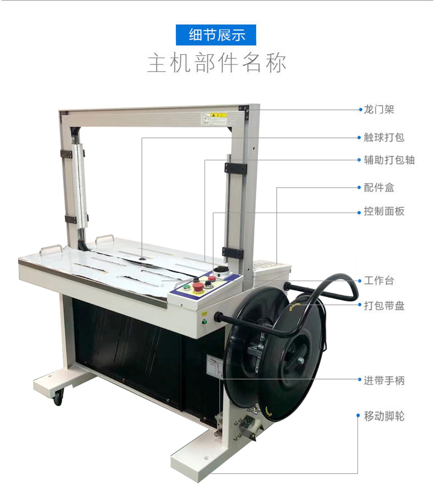 1. 送帶:將打包帶從帶盤上拉出,并輸送到打包位置。