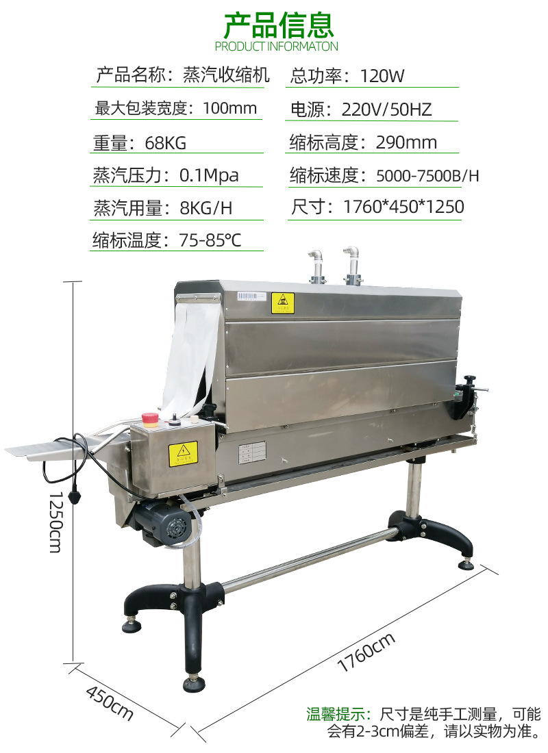 蒸汽收縮機(jī)是一種用于包裝行業(yè)的設(shè)備,主要用于對包裝好的產(chǎn)品進(jìn)行熱收縮包裝處理,下面為您詳細(xì)介紹: