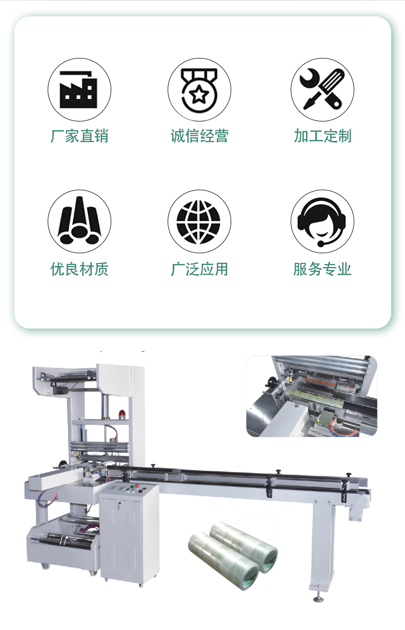 全自動膠帶包裝機是一種高效自動化設(shè)備,用于膠帶產(chǎn)品的包裝。它能自動完成多道包裝工序,將膠帶卷包裝成符合市場銷售和運輸要求的成品。這種設(shè)備集成了機械、電氣、氣動等多種技術(shù),通過精確的控制系統(tǒng)協(xié)調(diào)各部分工作,大大提高了膠帶包裝的生產(chǎn)效率和包裝質(zhì)量。 工作流程 進料:首先通過進料裝置將膠帶卷有序地輸送到包裝區(qū)域。進料裝置一般有輸送帶,能夠穩(wěn)定地把膠帶卷按照一定的間距逐個傳送,確保膠帶卷能準(zhǔn)確進入下一個包裝環(huán)節(jié)。 裹包:在包裝區(qū)域,包裝材料(通常是塑料薄膜)會被展開并圍繞膠帶卷進行包裹。這一過程是通過機械結(jié)構(gòu)來實