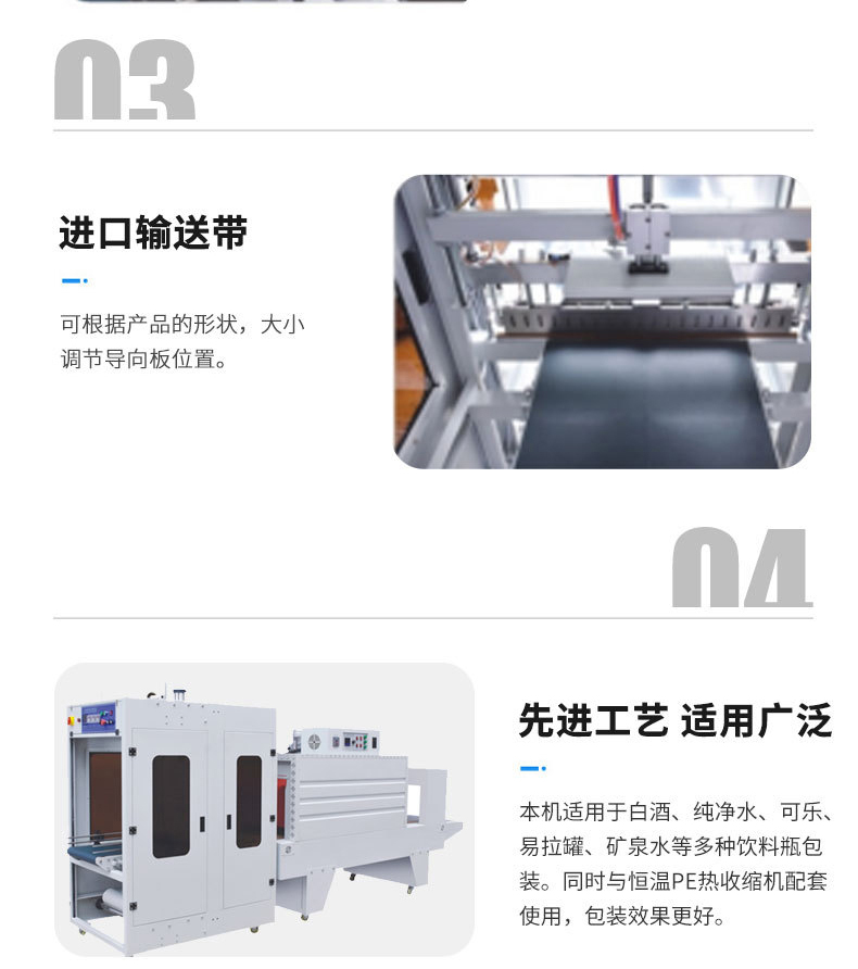 - 多功能集成是當前的一個重要發展趨勢。除了基本的包裝功能外,直線袖口式全自動包裝機開始集成更多的輔助功能,如自動貼標、噴碼、計數等。這些功能通過模塊化的設計集成到包裝機中,企業可以根據自身需求選擇不同的功能模塊進行組合。例如,在藥品包裝中,集成的噴碼模塊可以在包裝上清晰地打印藥品名稱、批次、有效期等重要信息。