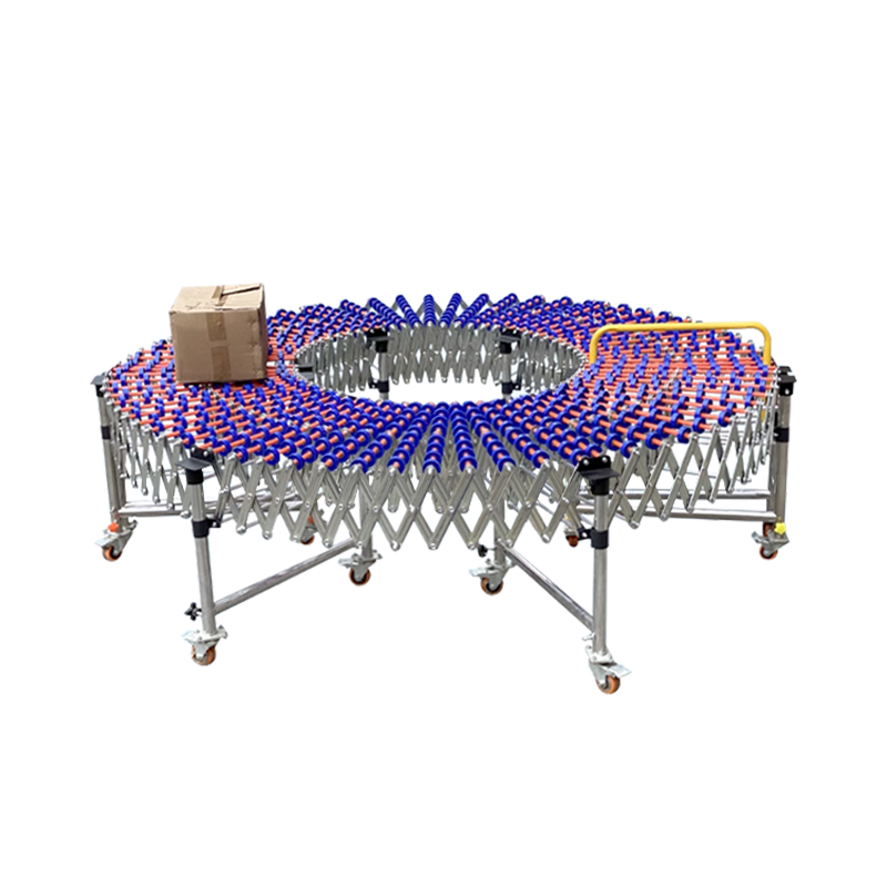 滾輪輸送機是一種利用滾輪的旋轉來輸送物品的設備。它可以分為無動力滾輪輸送機和動力式滾輪輸送機。無動力滾輪輸送機主要依靠物品的自重或外力推動,如人工推動,使物品在滾輪上移動。動力式滾輪輸送機則配備電機等動力裝置,通過傳動系統帶動滾輪旋轉,從而自動輸送物品。