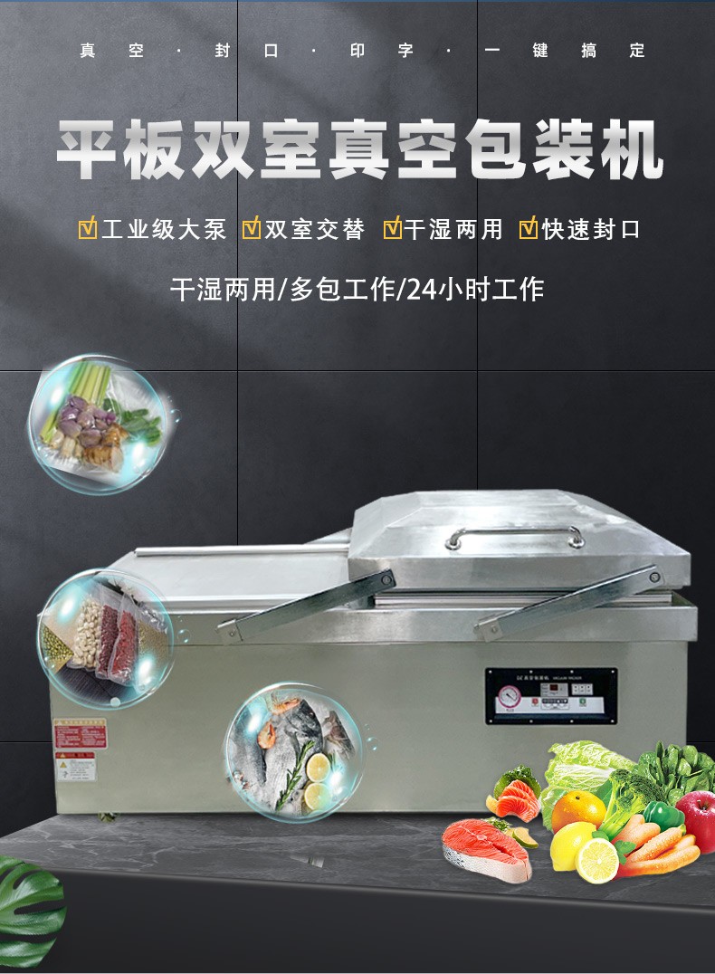 大型抽真空封口機商用平板雙室真空機 干濕兩用海鮮熟食品抽真空機 全自動雙室真空包裝機