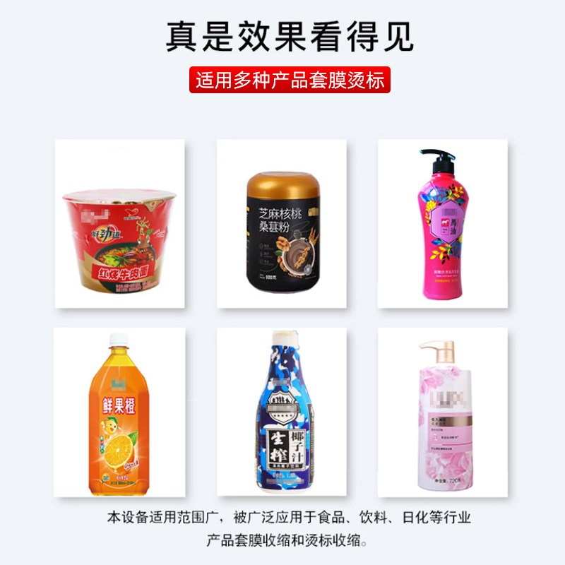 1. 食品飲料行業:用于瓶裝飲料、易拉罐、醬料瓶的標簽收縮,蒸汽加熱能避免高溫破壞食品,同時標簽貼合度高,提升產品外觀檔次。