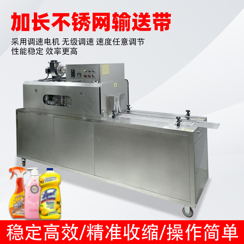 1. 前期準備與輸送:先人工或自動化設備將套好收縮膜(如 PVC、PET 膜)的產品放置在輸送帶上,輸送帶通過無級調速系統啟動,將產品勻速送入收縮通道。