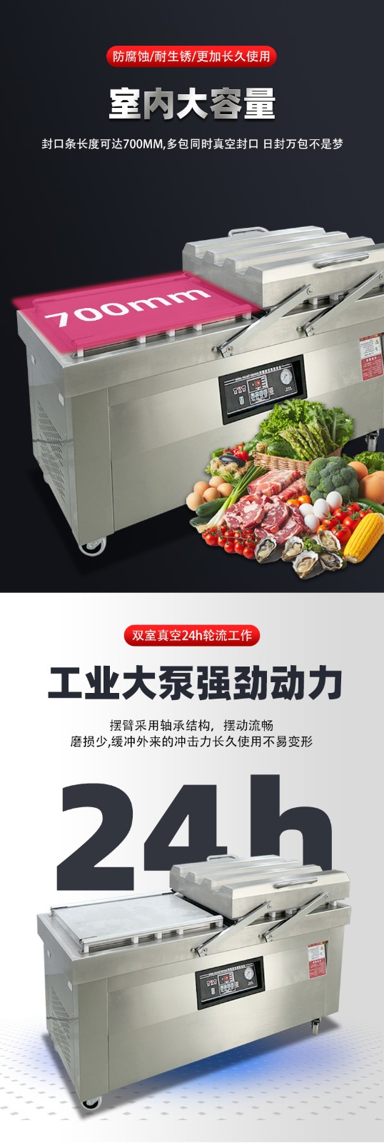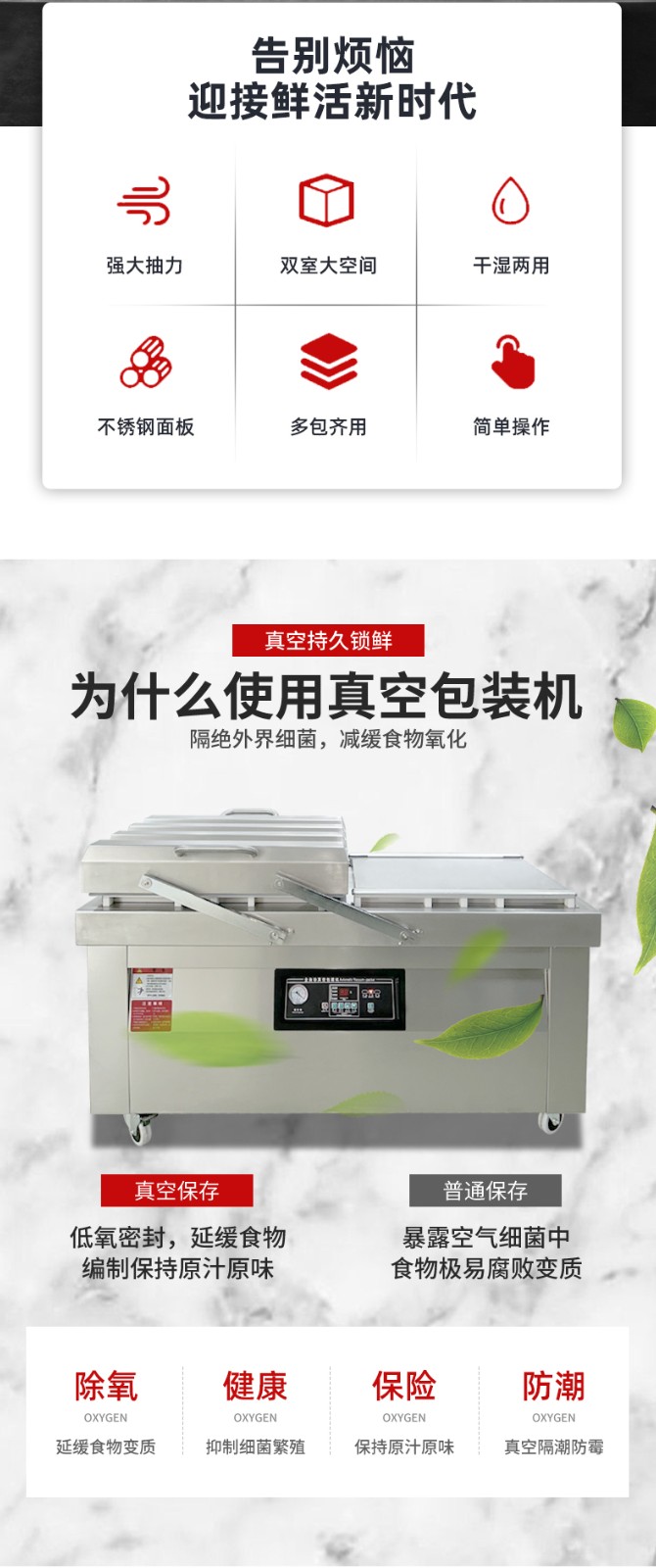 干濕兩用全自動雙室真空包裝機 真空封口鎖住新鮮商用食品包裝機