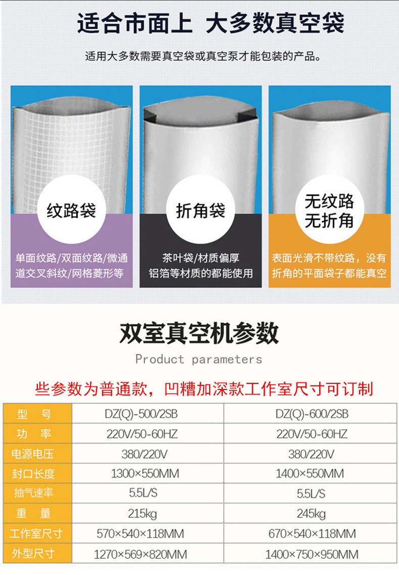凹糟加深款雙室真空包裝機(jī)大米食品塑料袋子抽真空封口機(jī)