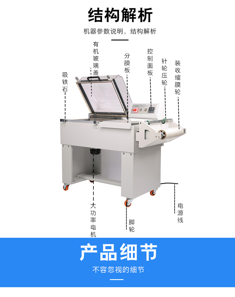 收縮機(jī),是一種用于包裝各種物品的現(xiàn)代化設(shè)備。通過(guò)將包裝薄膜加熱并包裹在產(chǎn)品上,使其迅速收縮,不僅能有效防止產(chǎn)品在運(yùn)輸、儲(chǔ)存過(guò)程中免受潮濕、跌落等外部因素的侵害,還能大大提升產(chǎn)品的包裝美觀(guān)度,提高銷(xiāo)售額。