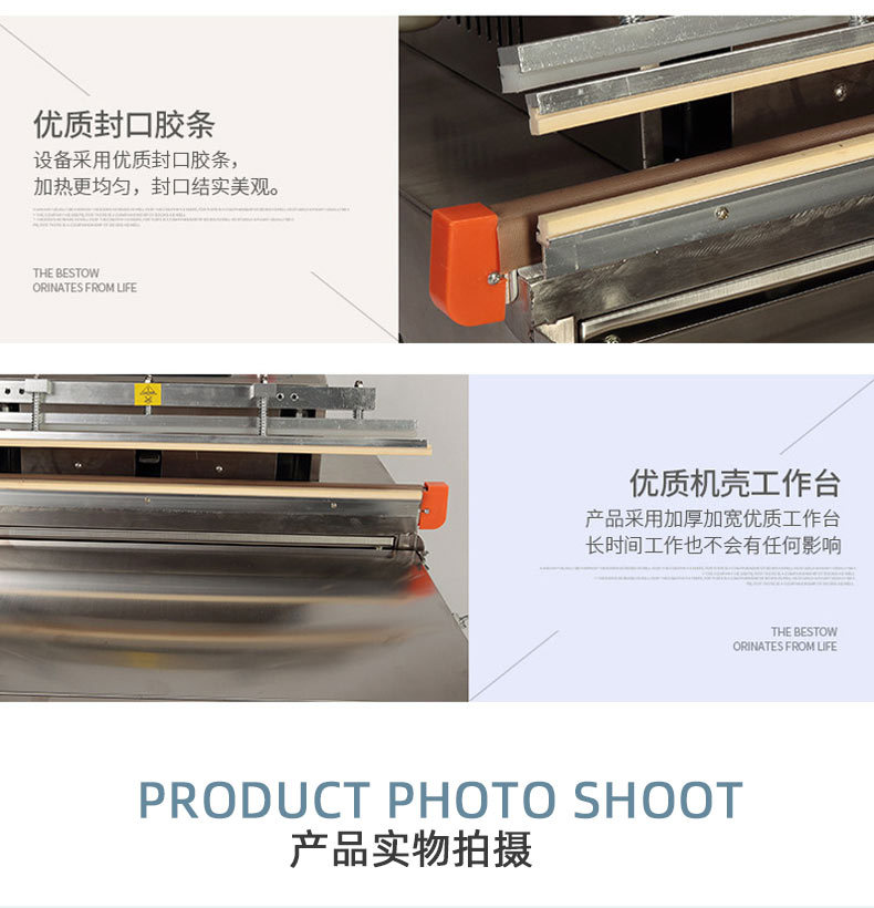 食品真空包裝機(jī)對(duì)香腸、肉制品、餅干等食品進(jìn)行真空包裝。經(jīng)過(guò)包裝后的食品可以防止霉變,保質(zhì)、保鮮而延長(zhǎng)產(chǎn)品的儲(chǔ)存期限,只需按動(dòng)真空蓋可自動(dòng)完成抽真空、封口。