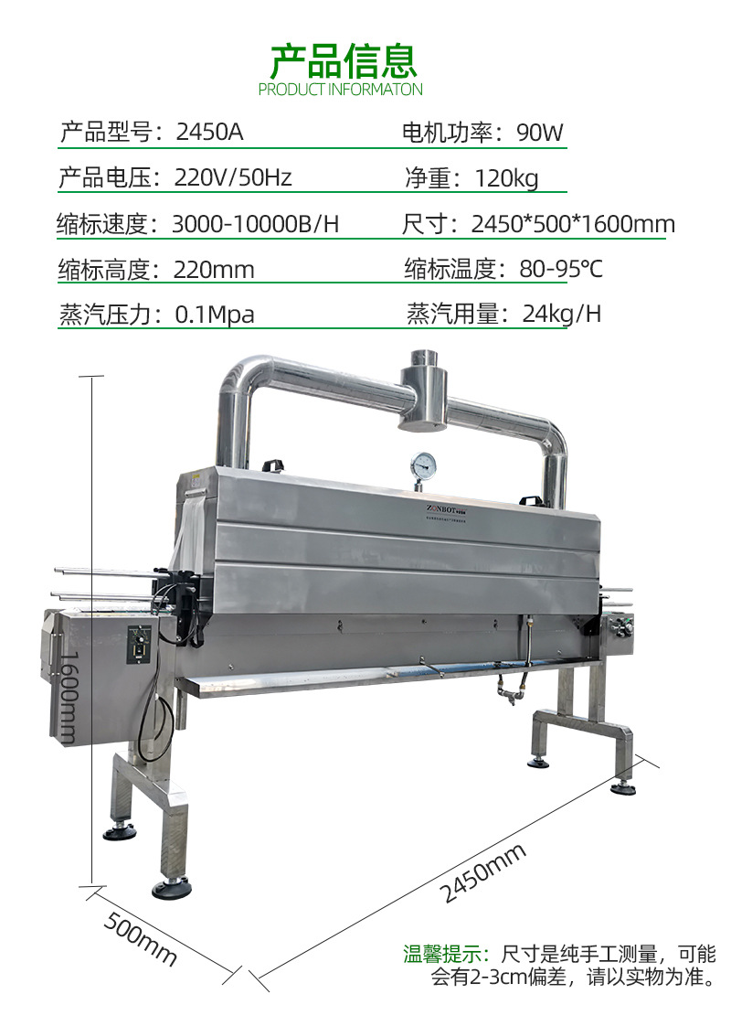 蒸汽式熱收縮機可以根據(jù)不同的生產(chǎn)速度來調(diào)節(jié)設(shè)備功率的大小,輸送帶采用無級調(diào)速,輸送速度可以任意調(diào)節(jié)。廣泛應(yīng)用于大桶或小瓶裝礦泉水、純凈水;汽水和茶飲料等食品飲料行業(yè),以及化妝品、洗發(fā)水和五