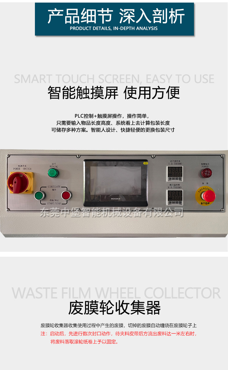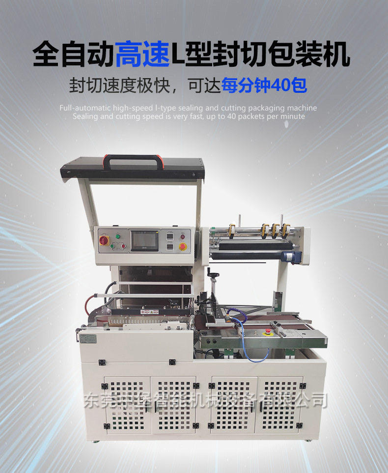 封切機是全自動無人化操作的包裝機,廣泛用于批量生產包裝的流水作業,工作效率高,自動送膜打孔,自動套膜封切,自動卷取廢料;只需手動調節導膜系統以及手動調節進料輸送平臺,適用不同寬度及高度的產品