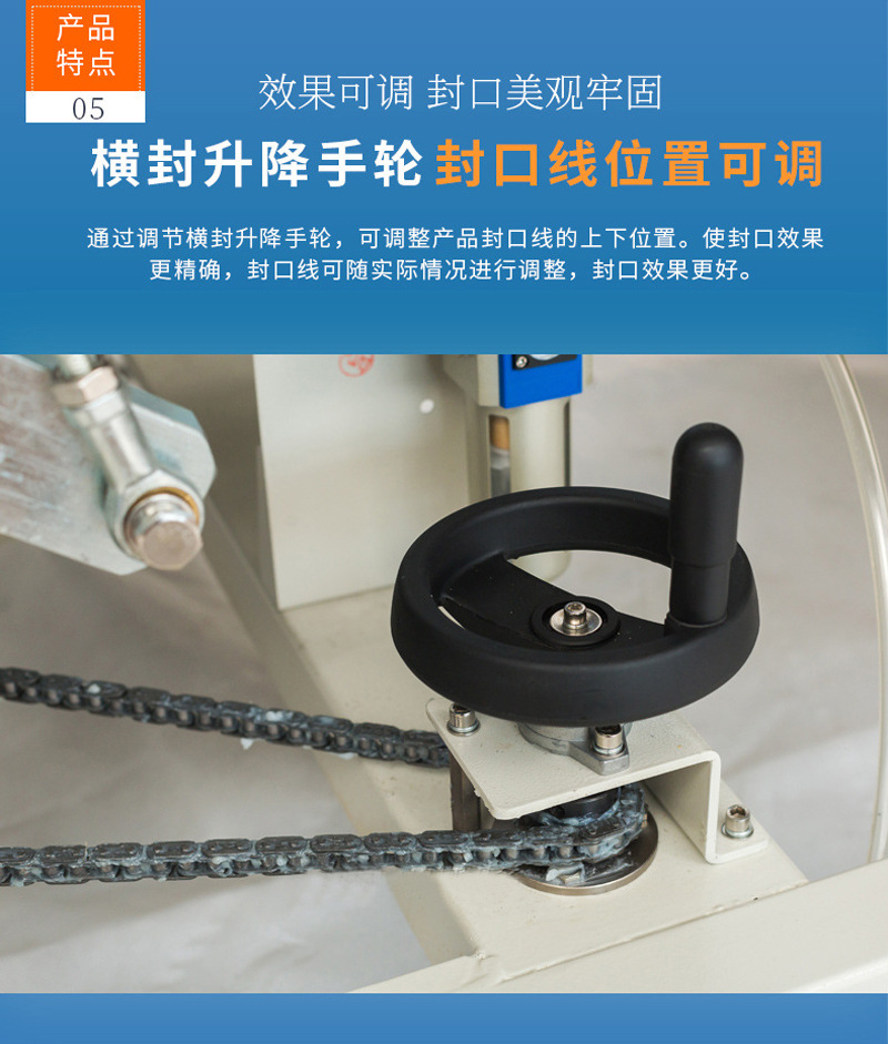 全自動封口機適用于醫藥、農藥、食品、日化、潤滑油、食品等行業的鋁箔袋,塑料袋,復合袋理想封口機械。本封口機是根據國內外先進的機型基礎上,重新設計制造而成,還有立臥兩用封口之功能。適用于所有塑料薄膜的封口及制袋,是食品廠、化妝品廠、藥廠等單位的理想封口設備,可連續運轉,還可根據用戶需要打出日期、批號等。適用于流水線工作。