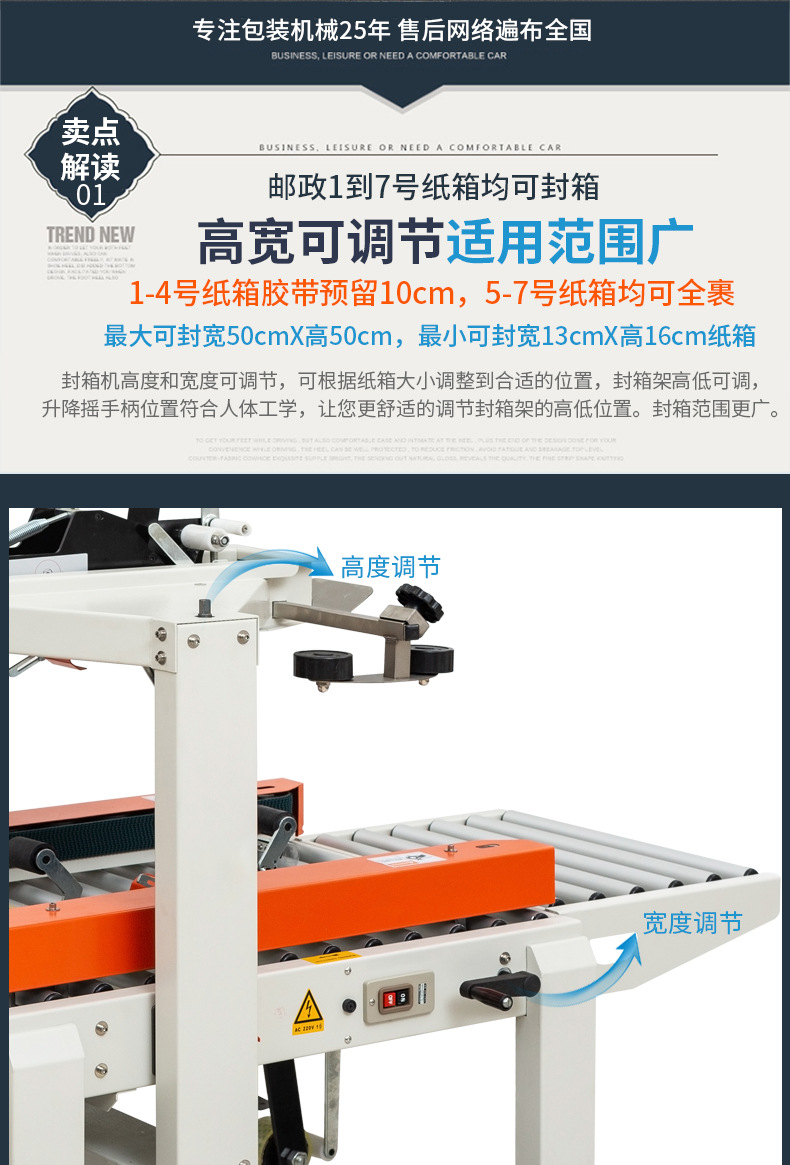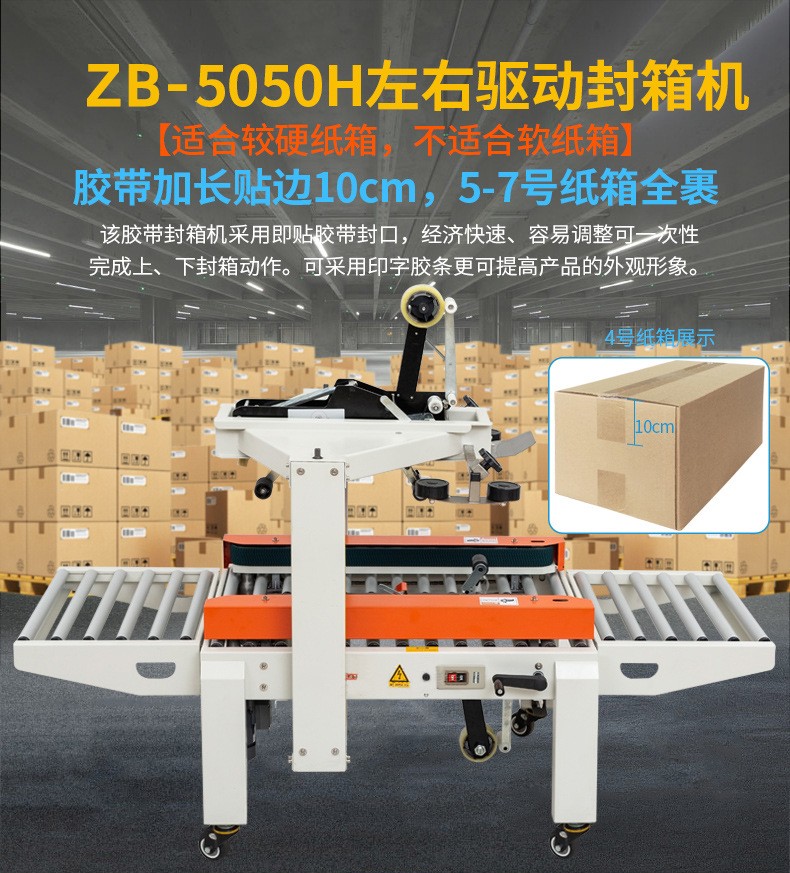 自動封箱機廣泛用于食品、日化、醫(yī)療制藥、化妝品、服裝、電商、物流、電子、五金、化工、郵政等行業(yè),適用于紙箱打包、紙張打包、包裹打包、日化用品打包、陶瓷制品打包