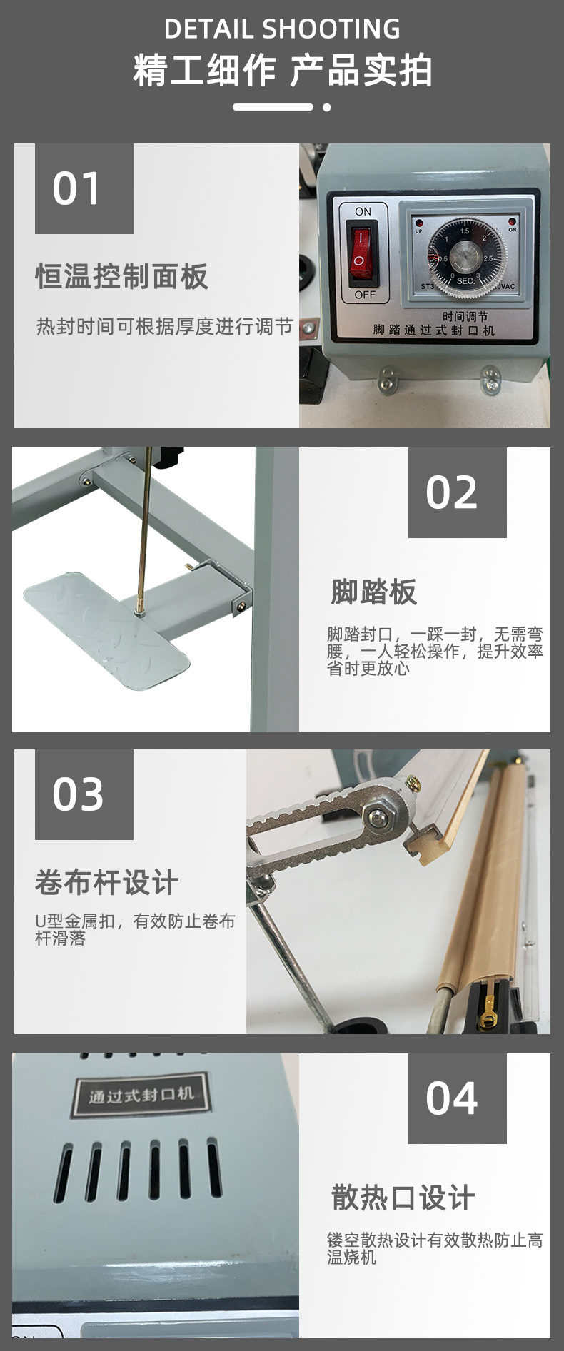 腳踏封口機適用于各種塑料薄膜、?復合薄膜及鋁塑薄膜的封合。?這種封口機因其高效、?簡單操作和廣泛的應用領域,?被廣泛應用于食品、?醫藥、?五金等多個行業。?
